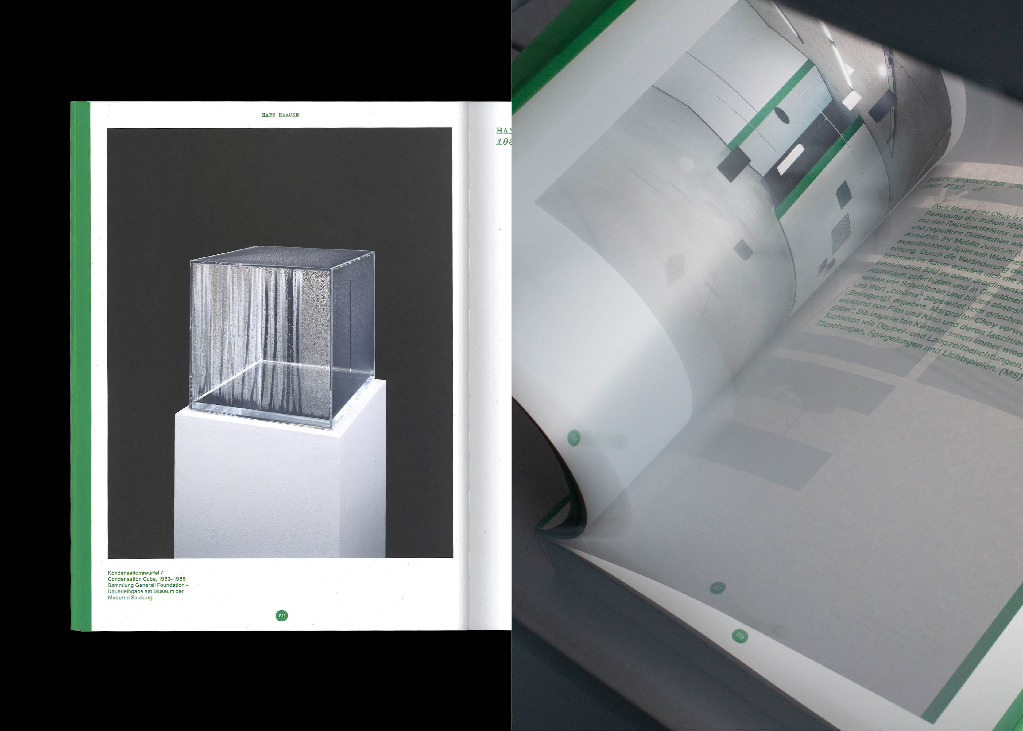 Die Publikation SalzburgBilder ist das Resultat einer Kooperation zwischen dem Freilichtmuseum Salzburg und dem Fotohof. Im Zuge der Kooperation wurden Salzburger Fotograf*innen eingeladen sich mit dem Fotoarchiv des Museums auseinanderzusetzen und eine eigene Arbeit zu entwickeln. Neben der Publikation wurden die entstandenen Projekte 2021 in einer Ausstellung gezeigt. Der entstandene Ausstellungskatalog jongliert mit historischen Referenzbildern von Bruno Kerschner und Kurt Conrad und deren zeitgenössischen Interpretationen. Einen Eindruck von dem beträchtlichen Umfang vermittelt der Umschlag. Auf einen schlichten weißen Karton wurde in einem dezenten Raster das Bildverzeichnis auf Vorder- und Rückseite geprägt. Auf 136 Seiten werden künstlerische Zugänge offengelegt, ausgebreitet und akribisch sortiert. Die Begleittexte und Biographien werden mittels der zeitlosen Kombination von Monospace und Groteskschrift als Blocksatz in einem strengen Fünfer-Raster gesetzt und geordnet, sodass der Katalog letztendlich selbst zum Archiv wird.