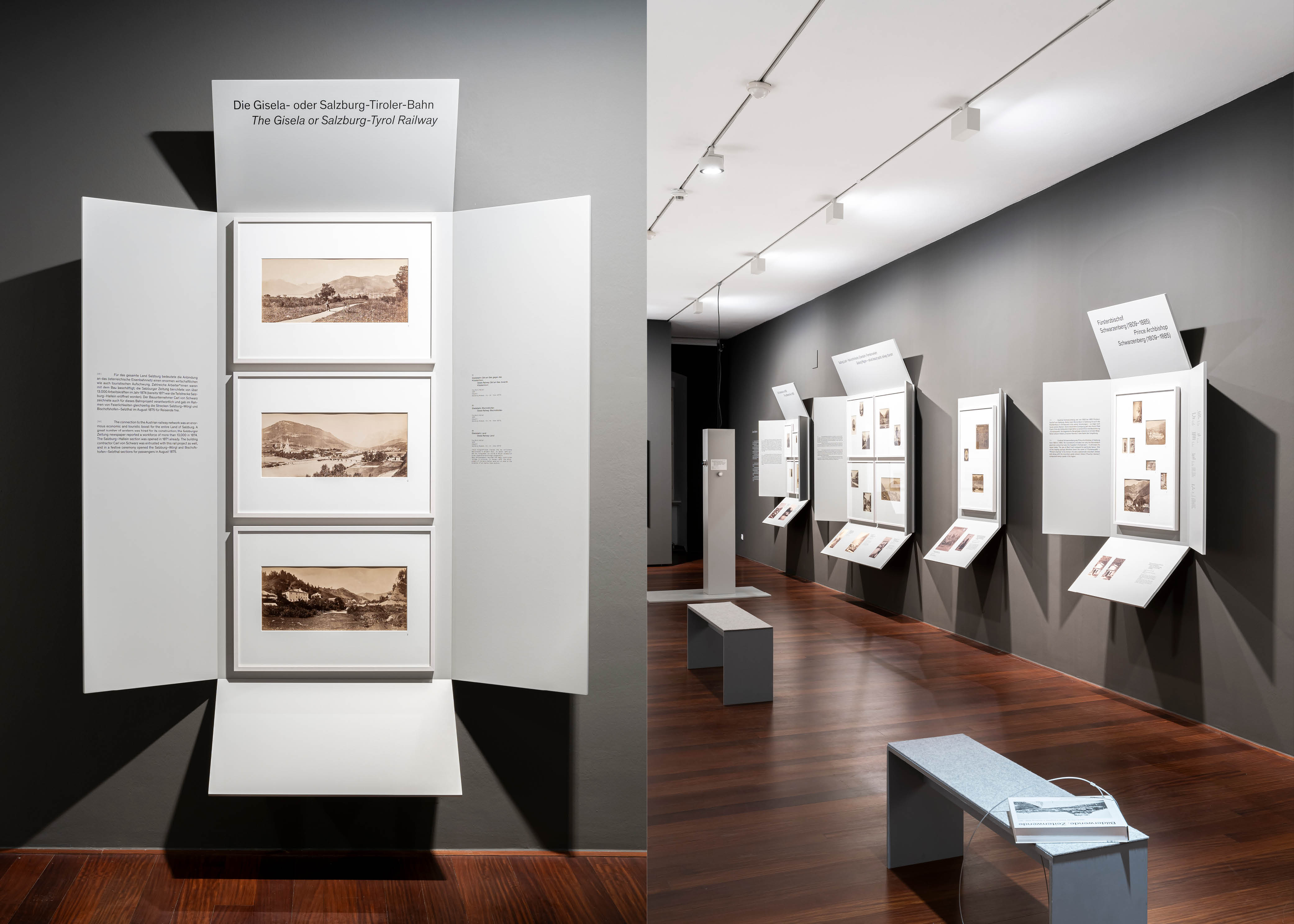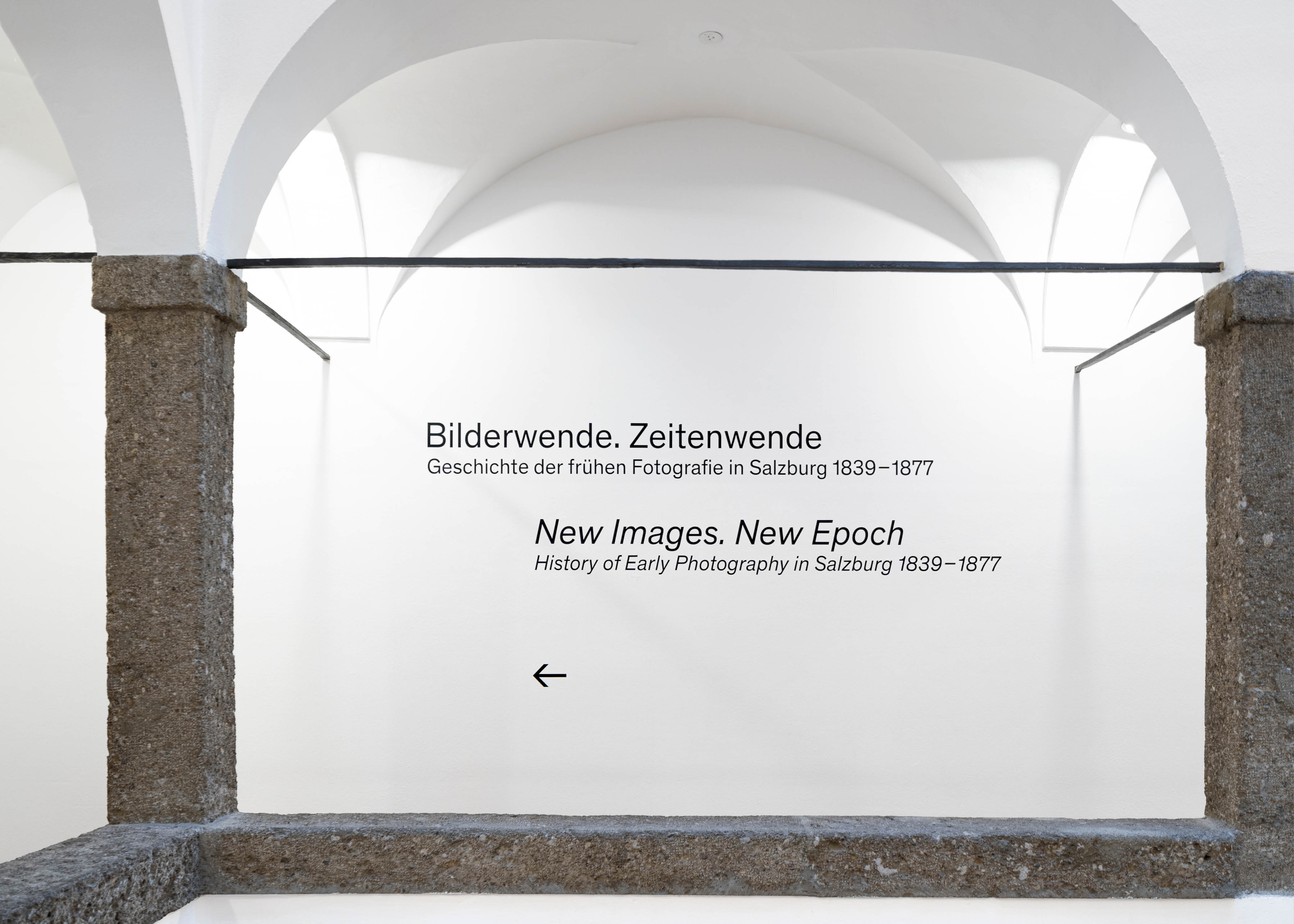 Die Ausstellung »Bilderwende. Zeitenwende« des Salzburg Museum zeigt die Geschichte der frühen Fotografie in Salzburg. Die Gestaltung unterstützt die dichte Präsentation von Bild- und Textmaterial durch klare typografische Strukturen und Ausstellungselemente. Die Gestaltung entstand in Zusammenarbeit mit Juliette Israël und reagiert auf die Materialfülle mit einem klaren Ordnungssystem. Unterschiedliche Displayformen, formal an Archivboxen angelehnt, gliedern die Ausstellung. In Klappen integriert, tragen sie verschiedene Textsorten und öffnen sich gleichsam der Geschichte der Fotografie. Die Typografie basiert auf der Theinhardt-Familie von Optimo. Die sachlich-konstruierte Grotesk zeichnet sich durch präzise Proportionen und eine zurückhaltende Anmutung aus, die eine klare, ruhige Textgestaltung ermöglicht. In Kombination mit der Monospace-Variante entsteht ein dokumentarischer Charakter, der an technische Beschriftungen und Archivpraxis erinnert – eine bewusste Referenz an die Forschungs- und Sammlungskontexte der Ausstellung. (Ausstellungsansichten: Helena Kalleitner).